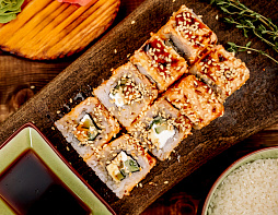 Запечённые роллы занимают особое место в сердцах любителей японской кухни. Ведь они просто тают во рту :) На самом деле, культура запечённых суши это в основном российское явление, ведь в наших краях особое место занимают именно горячие блюда. Мы стараемся делать наши роллы необычными и особенными, привнося в них свою изюминку. Просто посмотри, какие они красивые! Забирай скорее их домой 😍. А мы тебе бесплатно доставим 😜